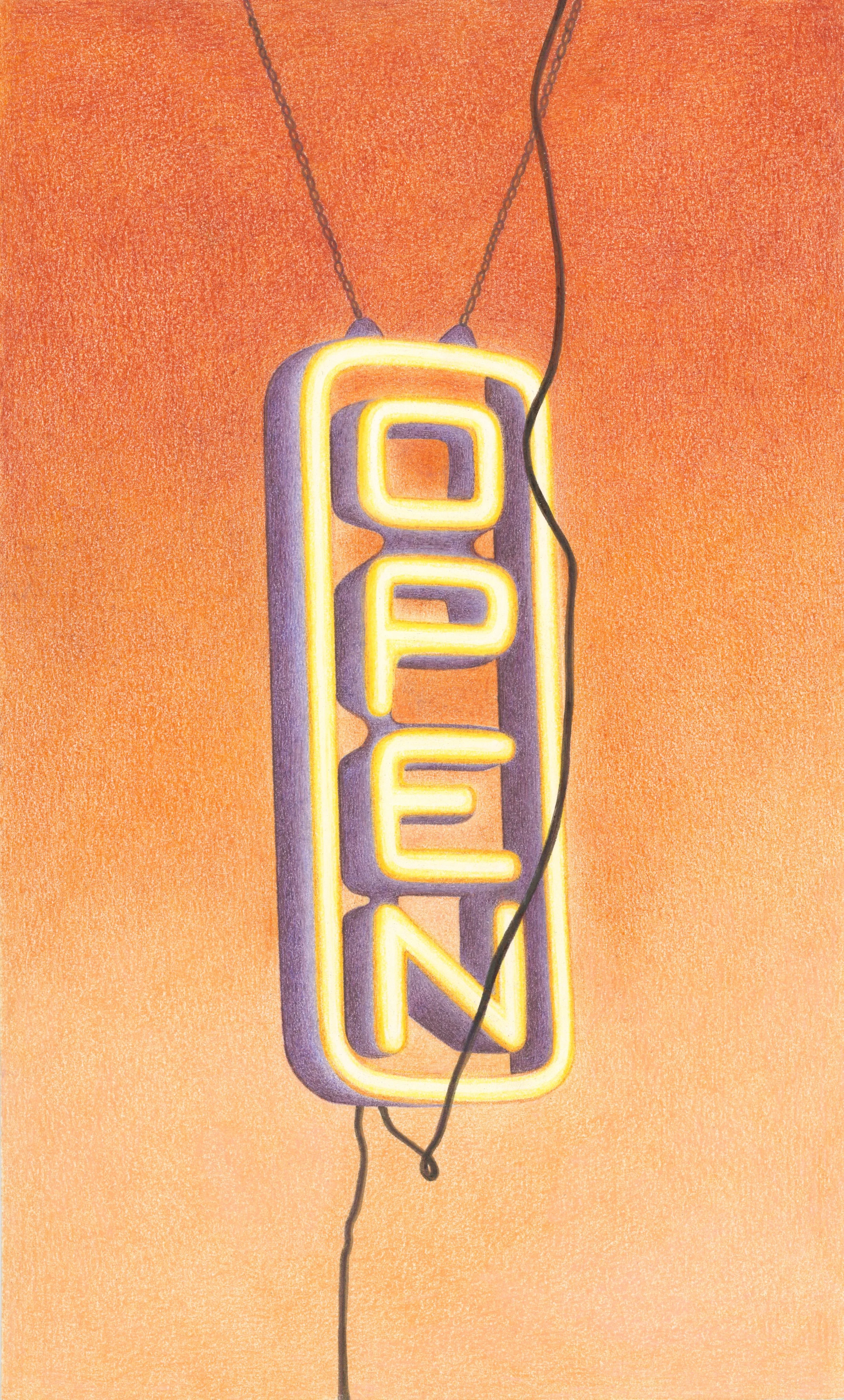 Chelsea Deli, 2025, colored pencil, marker, and acrylic on cotton paper, 6 x 10 inches