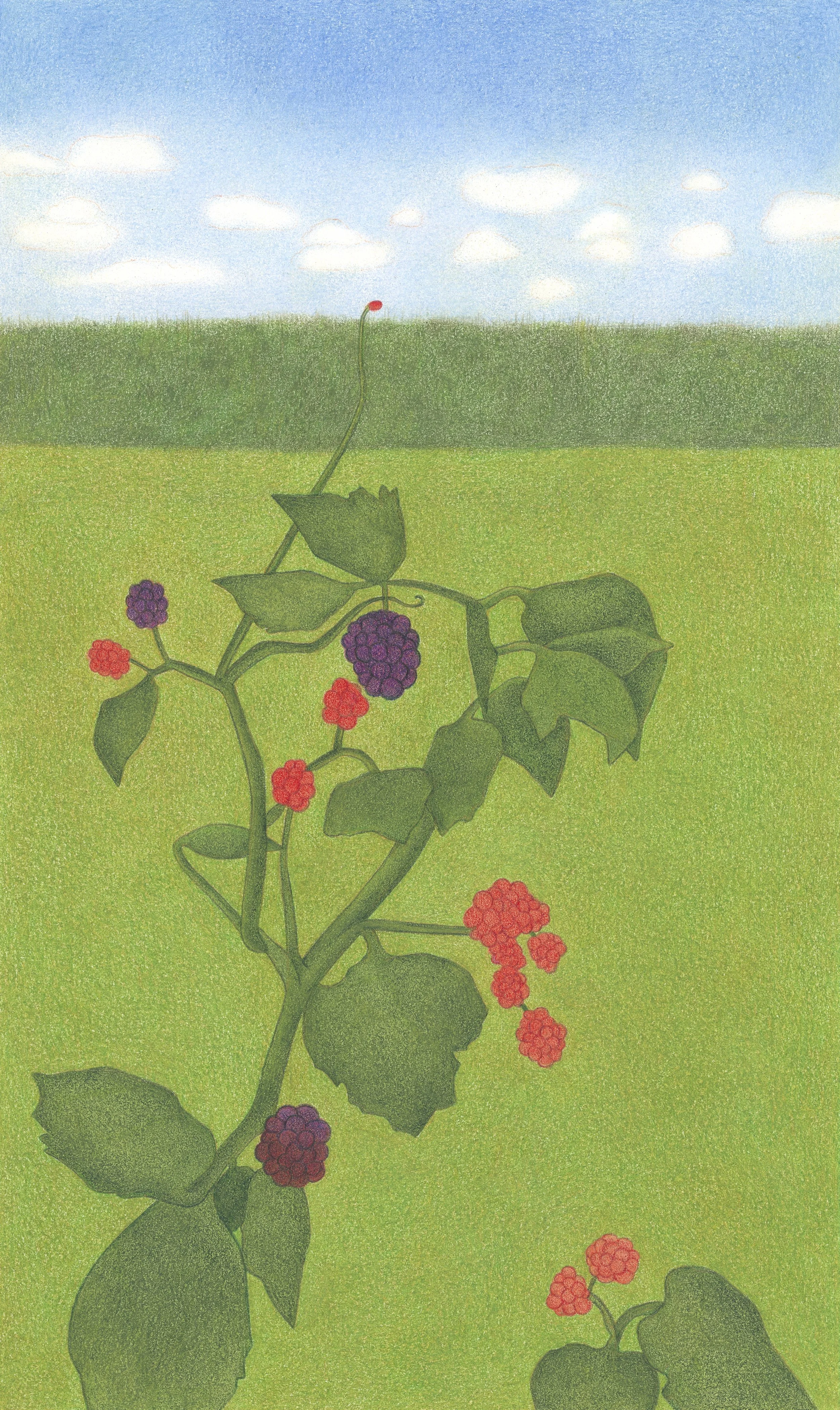 Elliot on the Farm, 2024, colored pencil, marker, and acrylic on cotton paper, 6 x 10 inches