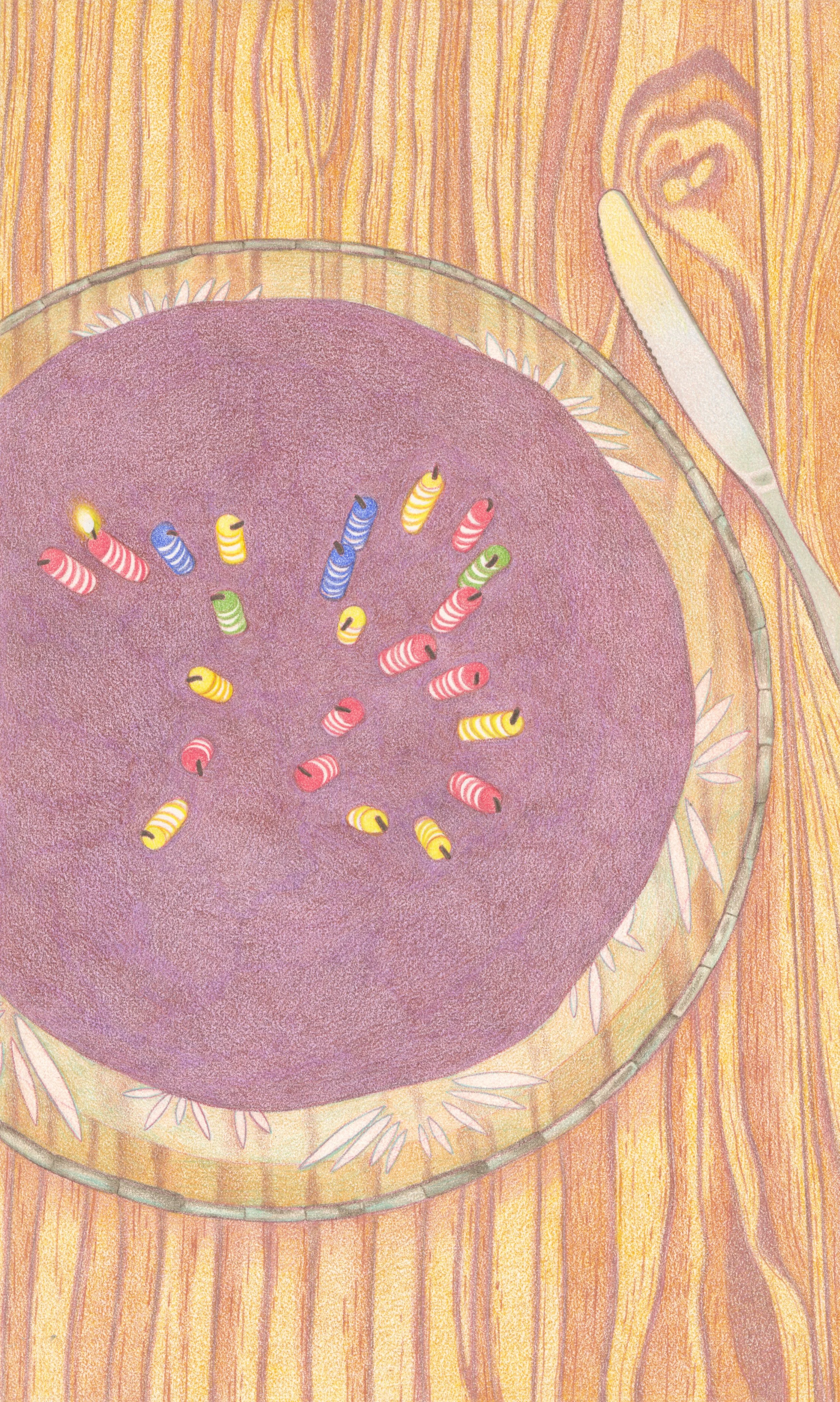 Double Layer Cake, 2024, colored pencil, marker, and acrylic on cotton paper, 6 x 10 inches