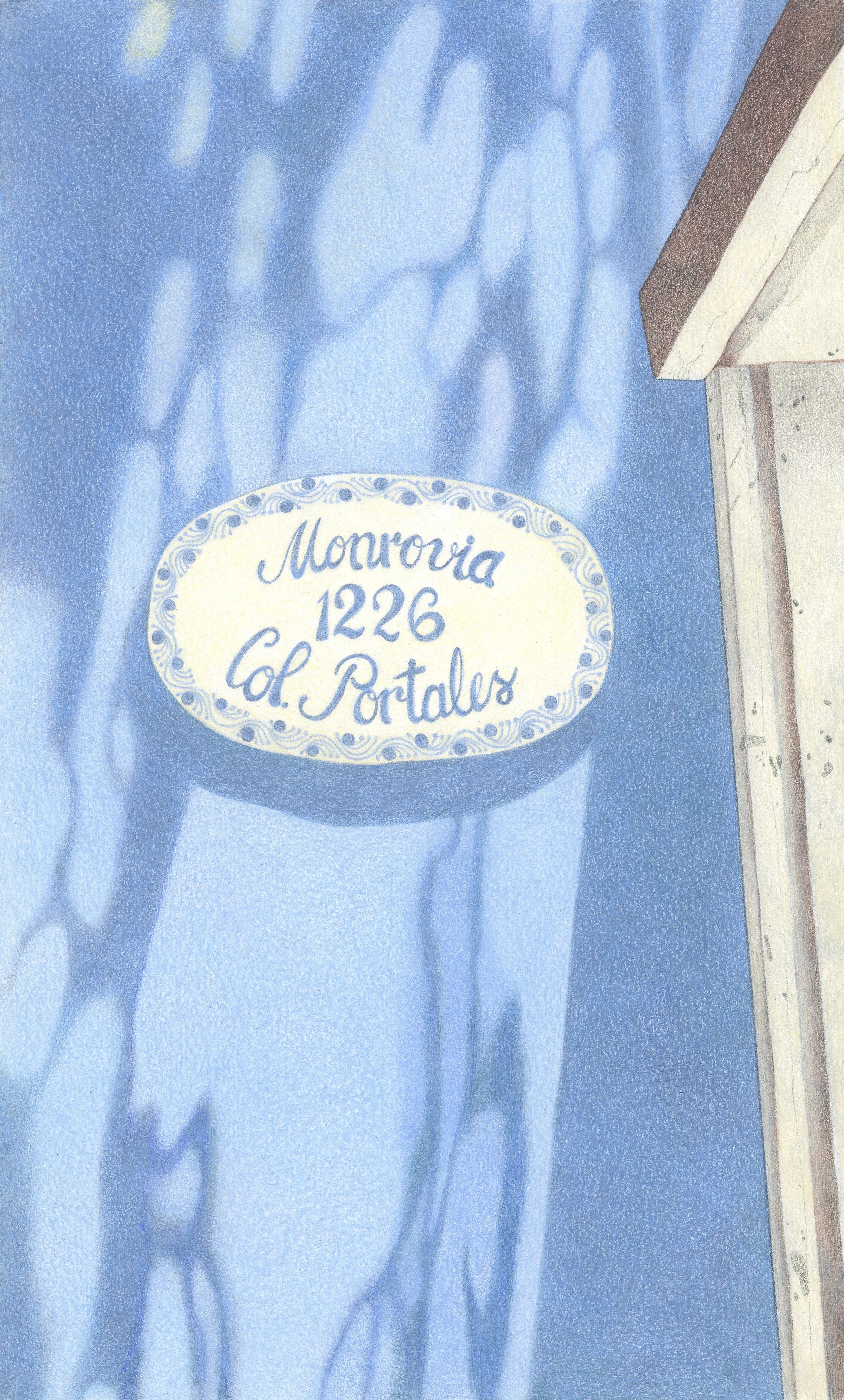 We Live Here, 2025, colored pencil on cotton paper, 6 x 10 inches